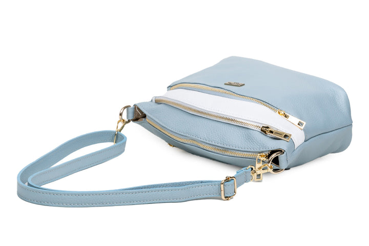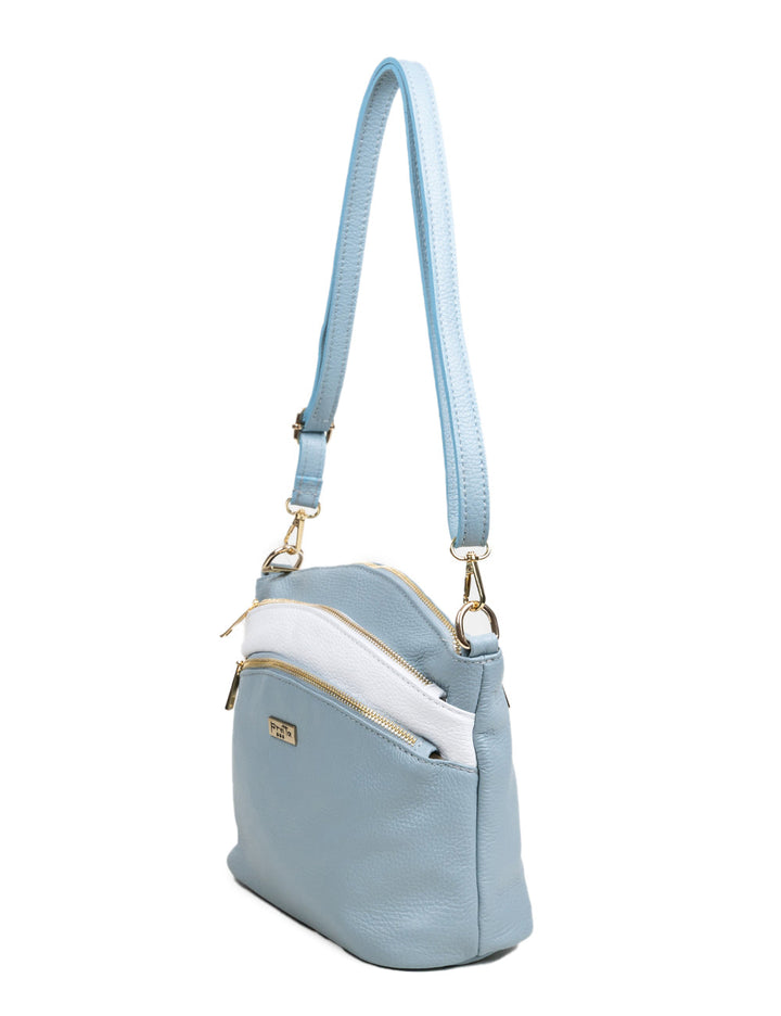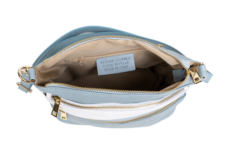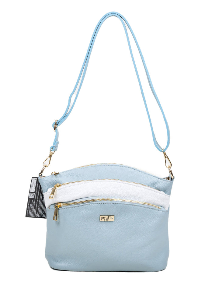 Leather Bag, Messenger Type, Pretta Model- 015 Sky Blue White