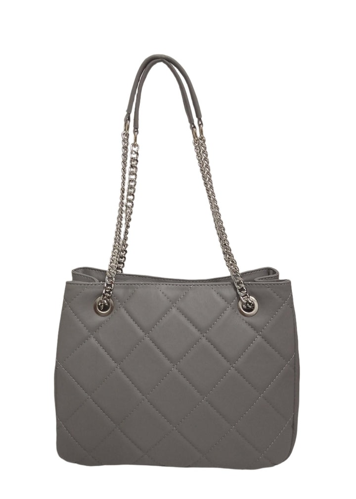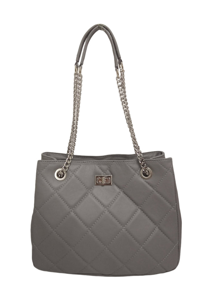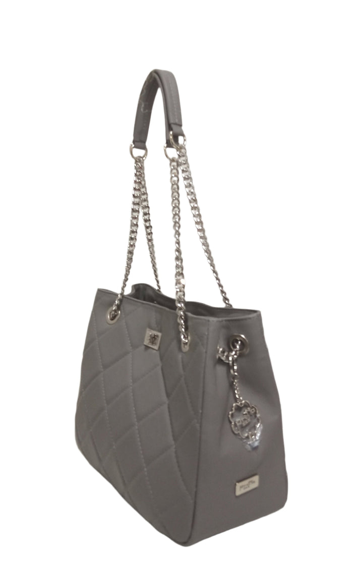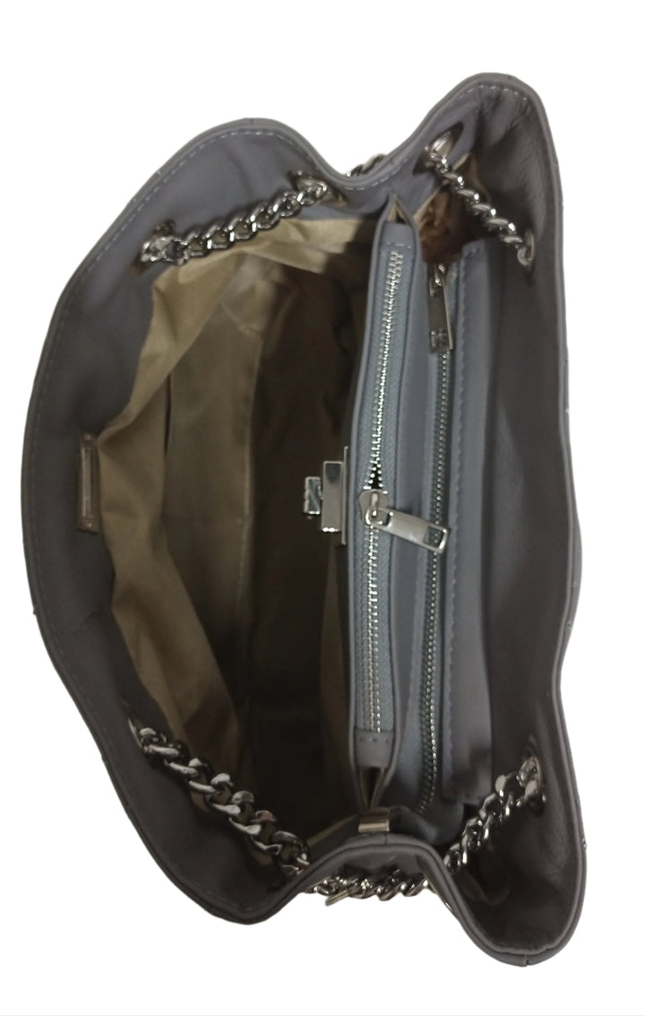 - Straps: two straps, a combination of leather and nickel-plated metal chain