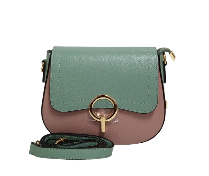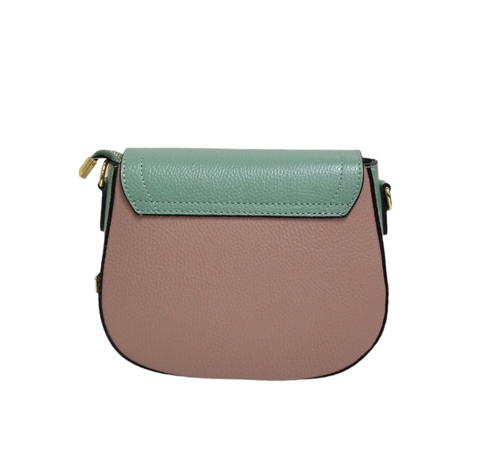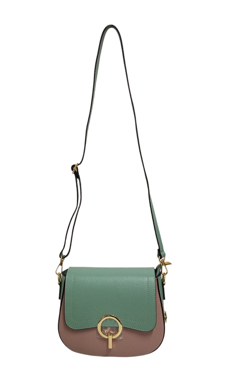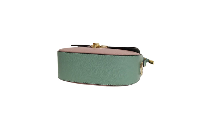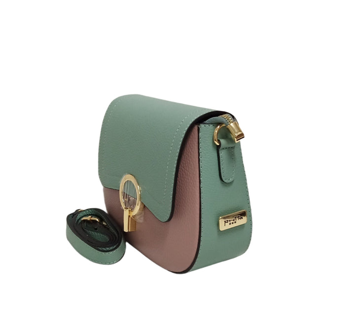 Bőrtáska, Postás típus, Pretta-183 modell, többszínű menta zöld – lila