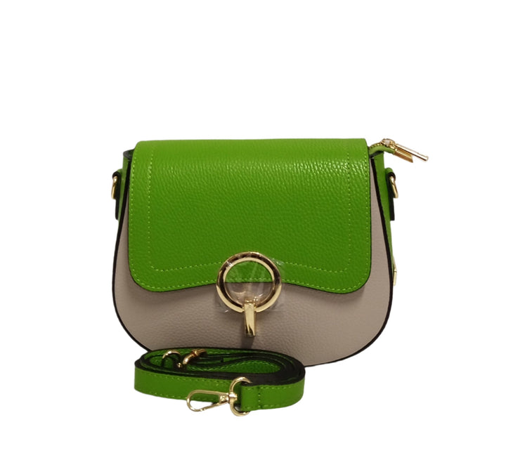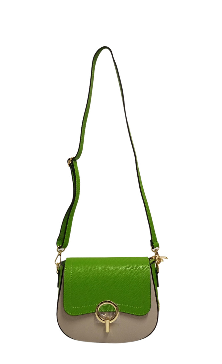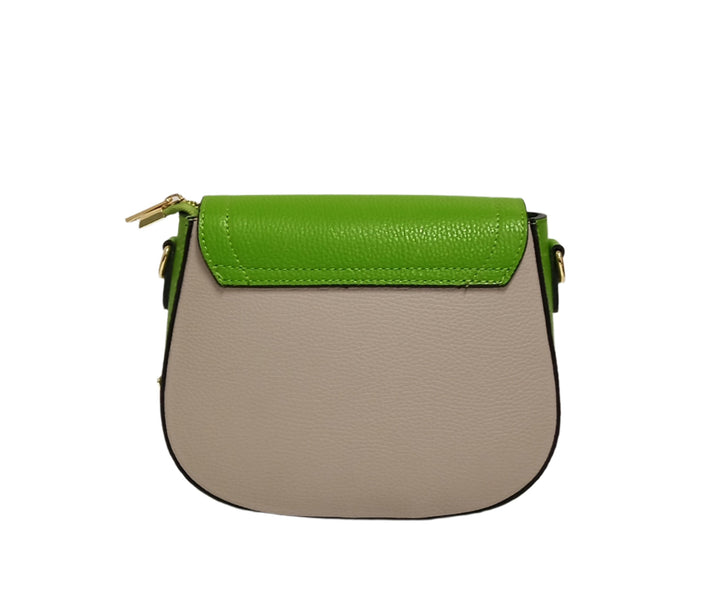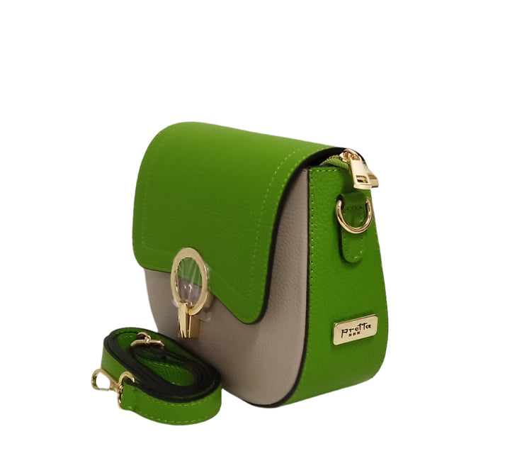 Bőrtáska, Postás típus, Pretta-183 modell Többszínű Zöld-Bézs