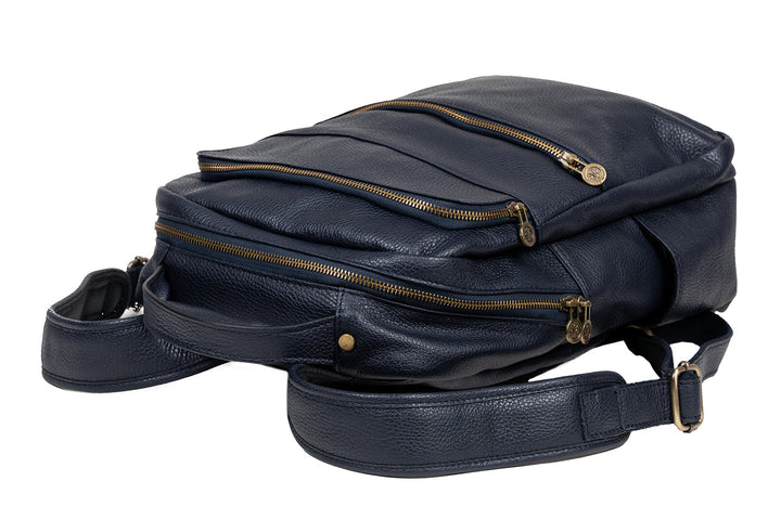 Men's Backpack Made of Natural Leather - Pretta 500 Navy Blue