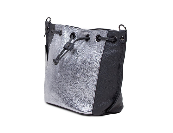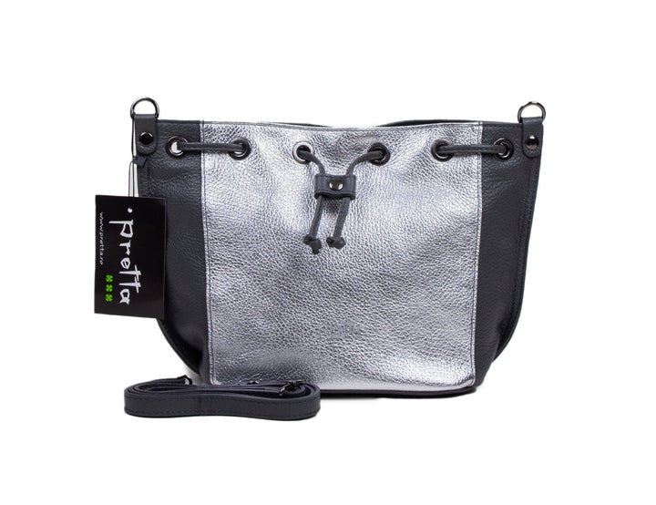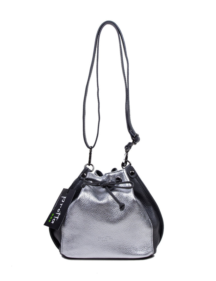 Kis valódi bőrtáska, Pretta 246 – sötétszürke–ezüst
