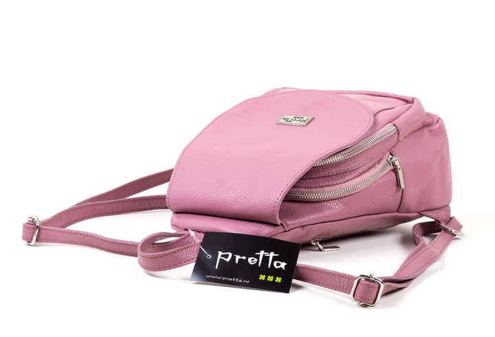 - Straps: fixed strap secured with stitching and adjustable straps with nickel-plated metal rings