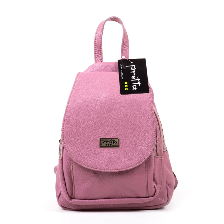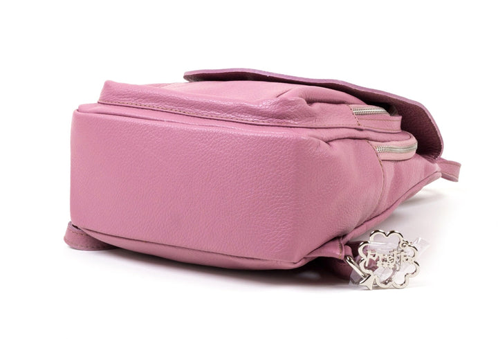 - Closure: leather flap with two circular metal zippers and a magnetic snap closure
