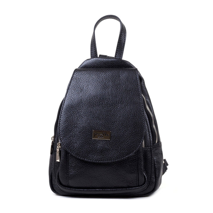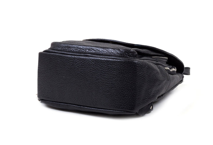 - Closure: two metal zippers all around and a leather flap secured with a magnetic snap