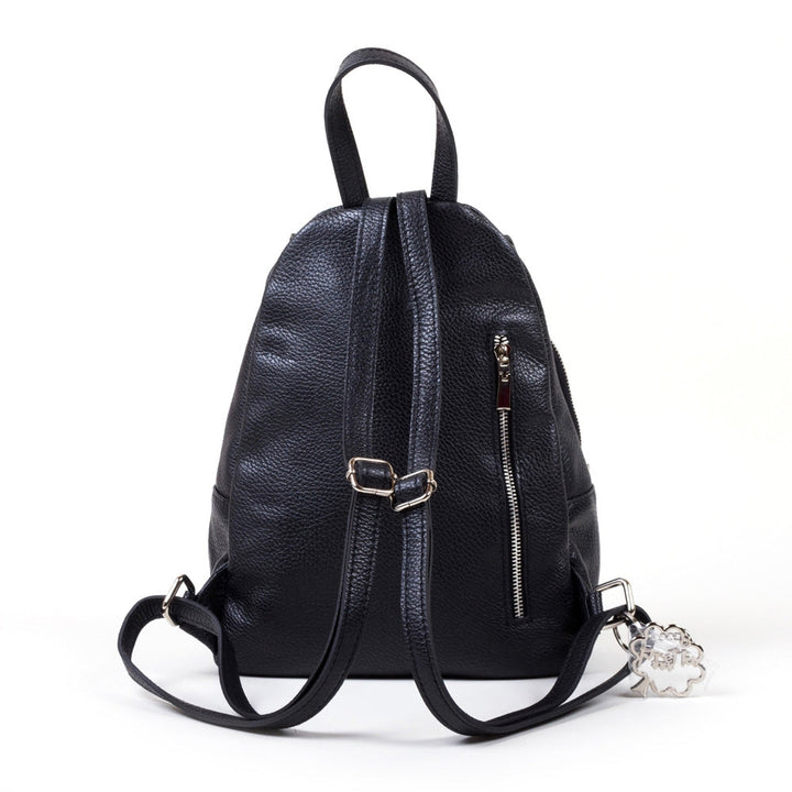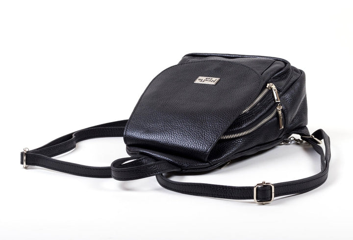 - Straps: fixed strap secured with stitching and adjustable straps with nickel-plated metal rings
